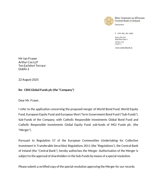 Thank you for your continued support of CBIS. Merger Approval Letter CBIS World Bond Fund CBIS European Short-Term Government Bond Fund CBIS European Equity Fund CBIS World Equity Fund